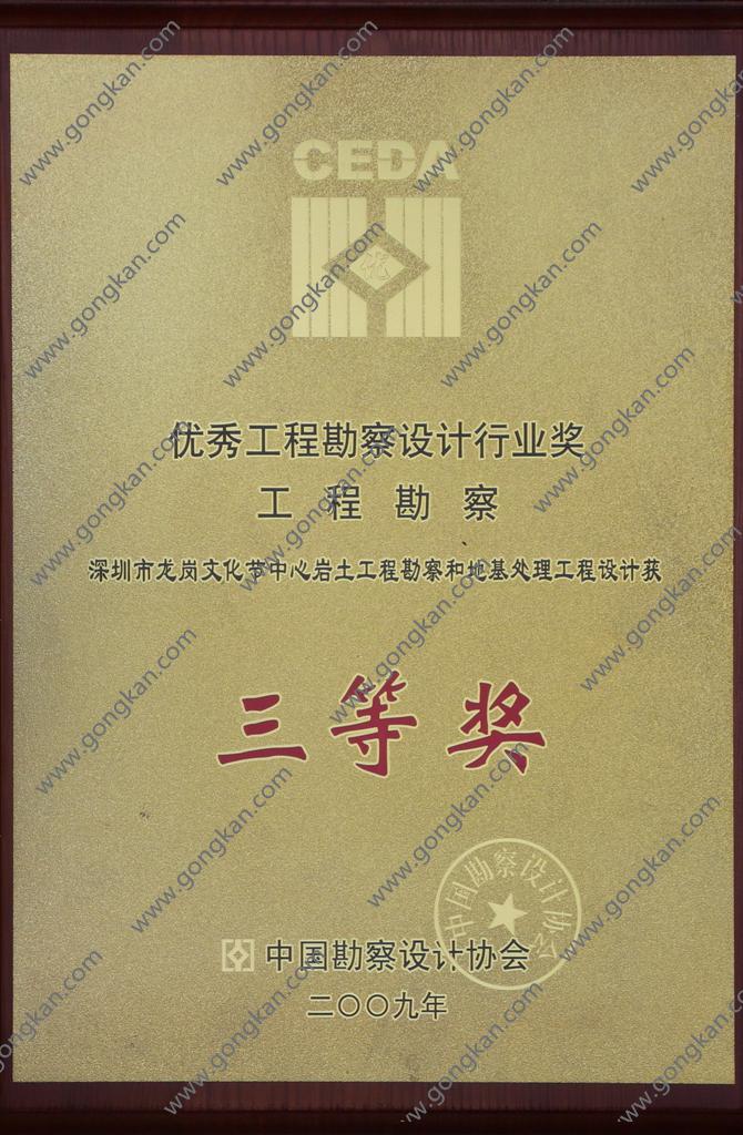 2008-深圳市龙岗文化节中心岩土工程勘察和地基处理工程设计 三等奖