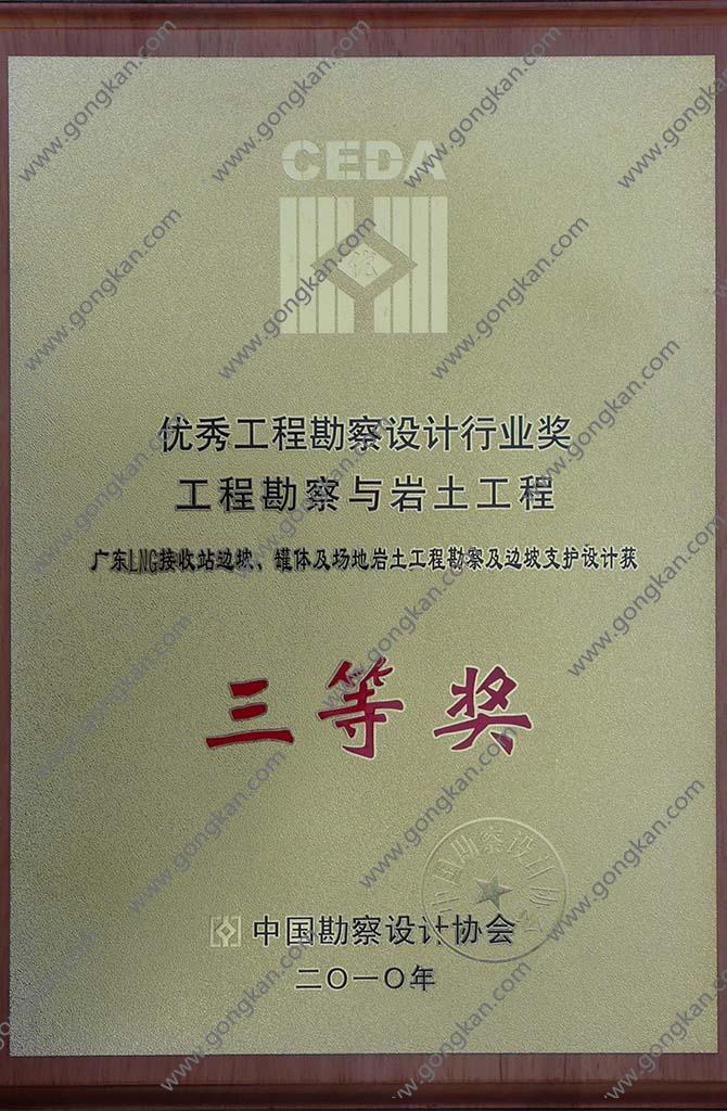 2009-全国建设行业优秀工程勘察设计三等奖《广东LNG接收站边坡、罐体及场地岩土工程勘察及边坡支护设计》