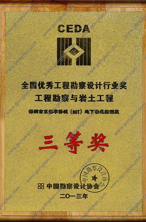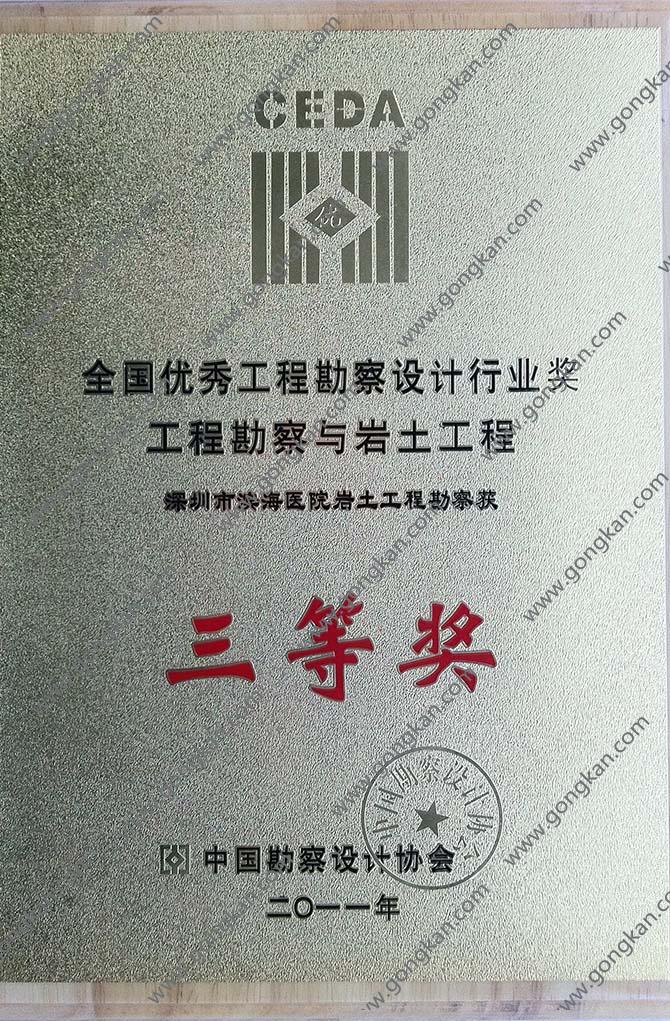 2011-年度全国优秀勘察设计行业奖工程勘察三等奖《深圳市滨海医院岩土工程勘察》
