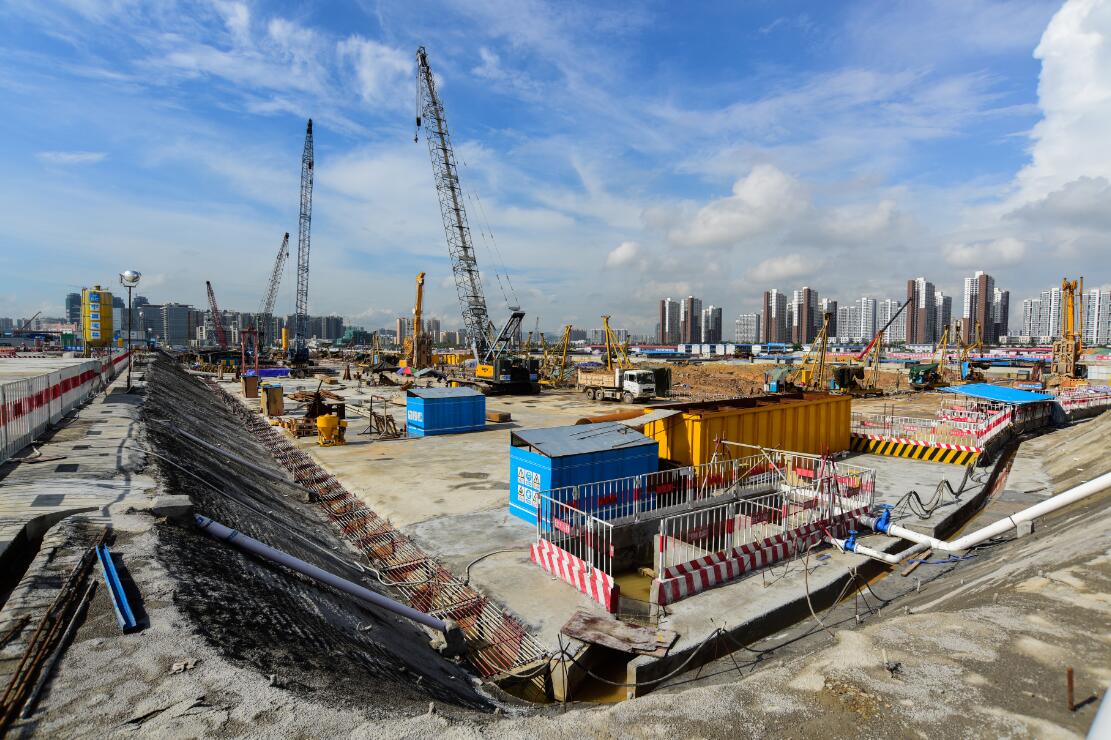 位于前海自贸区,亚洲第一大交通枢纽。用地内由东至西平行布设地铁1、5、11号线、穗莞深城际线及深港西部快线车站等5条地铁线路。基坑长800余米,宽近100米,最大开挖深度超过30米,施工深度超40米,地质条件极其复杂,通过自主研发和实践,采用多项新型施工机械和工法。