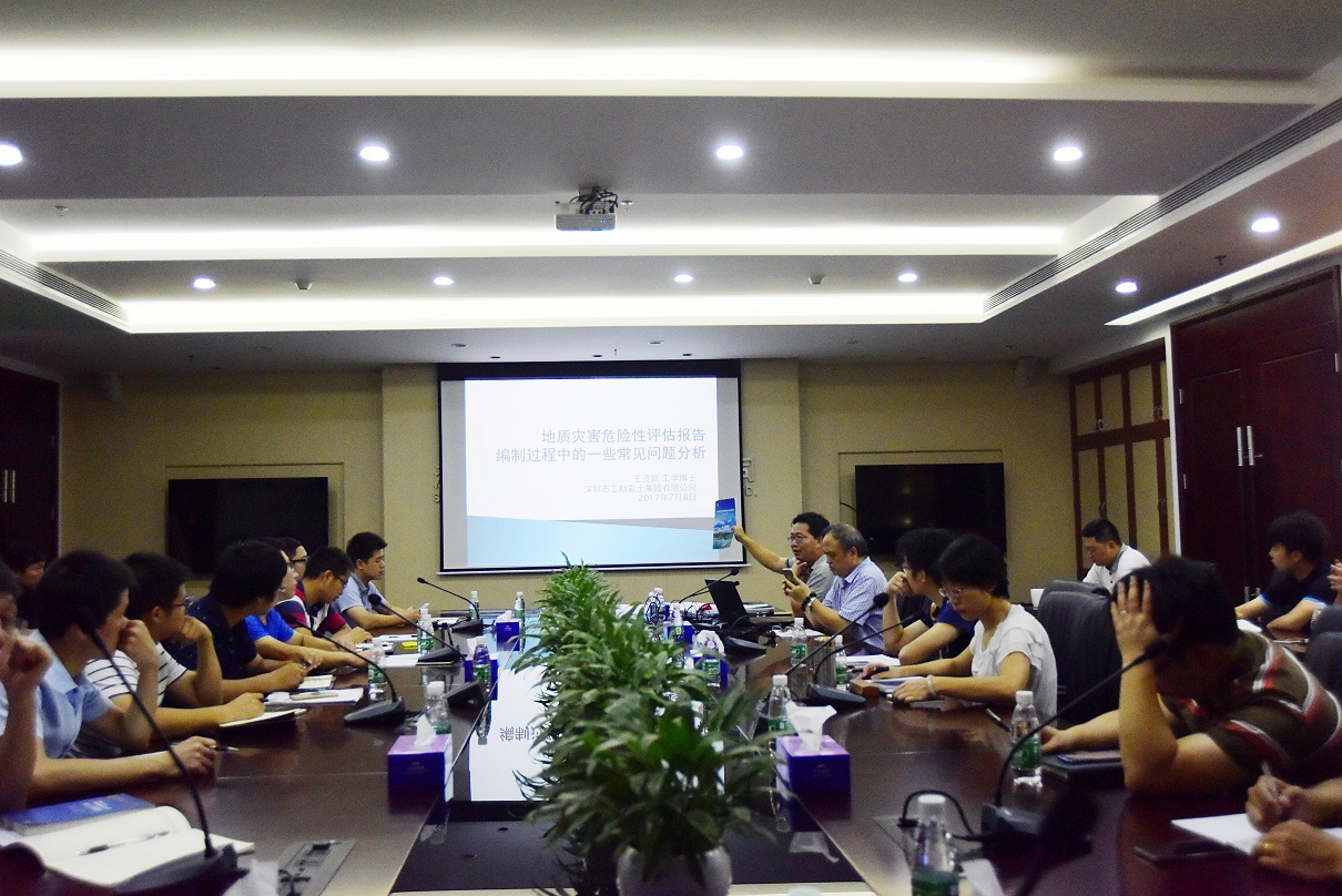 2017年7月8号上午,工勘学院第六期讲座于工勘大厦15楼会议室成功举办,本次主讲人为集团总工程师王贤能博士,讲座主题为《地质灾害危险性评估报告编制过程中的一些常见问题分析》。技术中心、环境地质研究所等部门副职以上负责人及相关专业技术人员参加了此次讲座,讲座由技术中心的郭清主任主持。