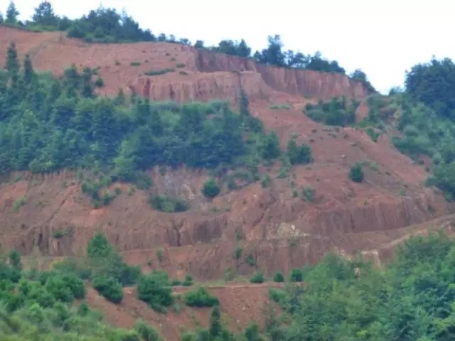 浸矿区遗留地的表层土受到酸性电解质液的浸染,土壤呈现较强的酸性,经过长年的风化和雨水冲刷,其周边土地也受到污染;浸矿区松散土体在水流作用下,沿区内沟谷漫流,土地无法有效利用,植被生长更为困难。