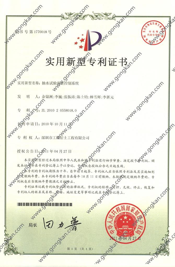 • 抽水试验流量控制系统 发明人:余锦洲;李巍;张振涛