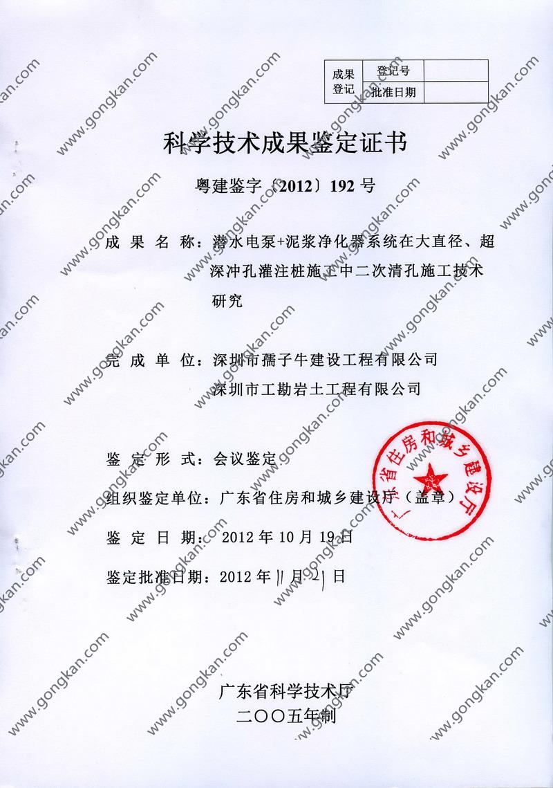• 2012-192 潜水电泵+泥浆净化器系统在大直径、超深冲孔灌注桩施工中二次清孔施工技术研究