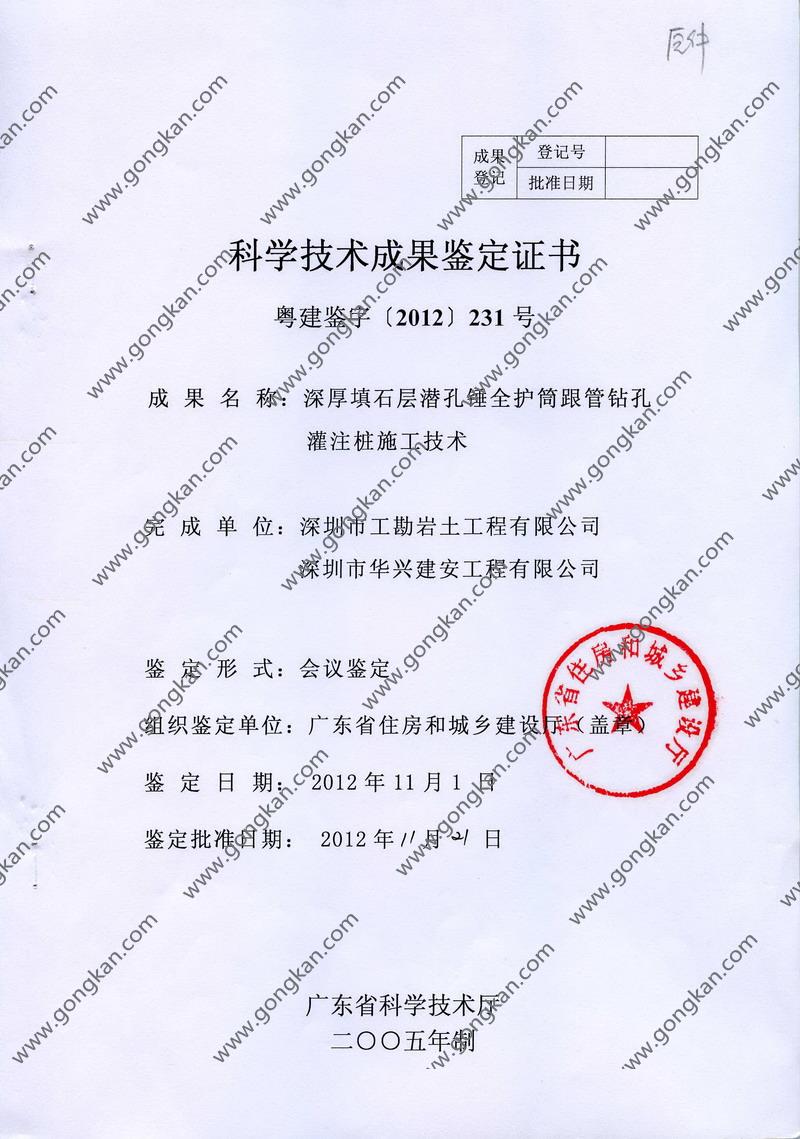 • 2012-231 深厚填石层潜孔锤全护筒跟管钻孔灌注桩施工技术研究