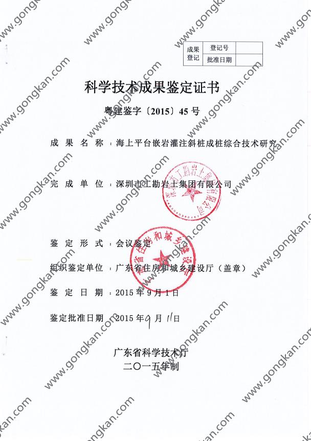 • 2015-045 海上平台嵌岩灌注斜桩成桩综合技术研究