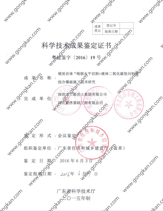 • 2016-019 硬质岩体“绳锯水平切割+液体二氧化碳竖向制裂”综合爆破施工技术研究