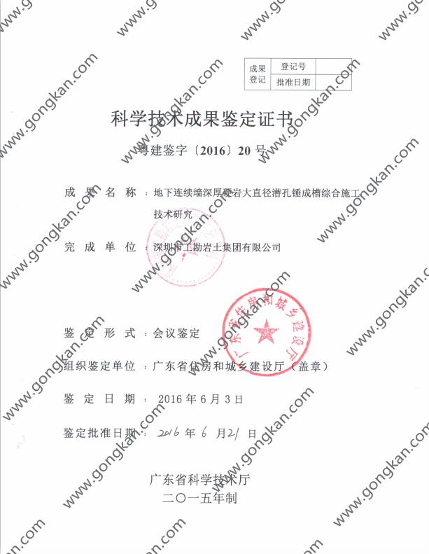 • 2016-020 地下连续墙深厚硬岩大直径潜孔锤成槽综合施工技术研究