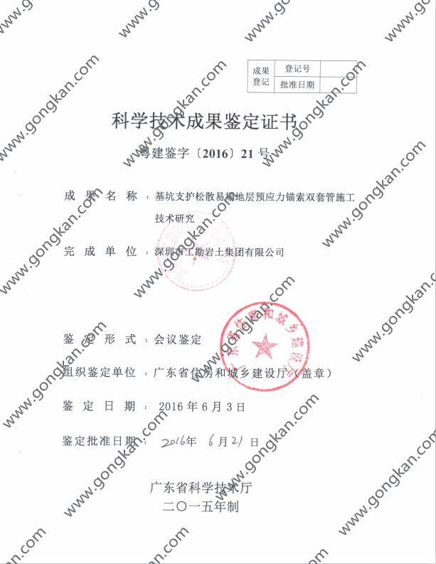 • 2016-021基坑支护松散易塌地层预应力锚索双套管施工技术研究