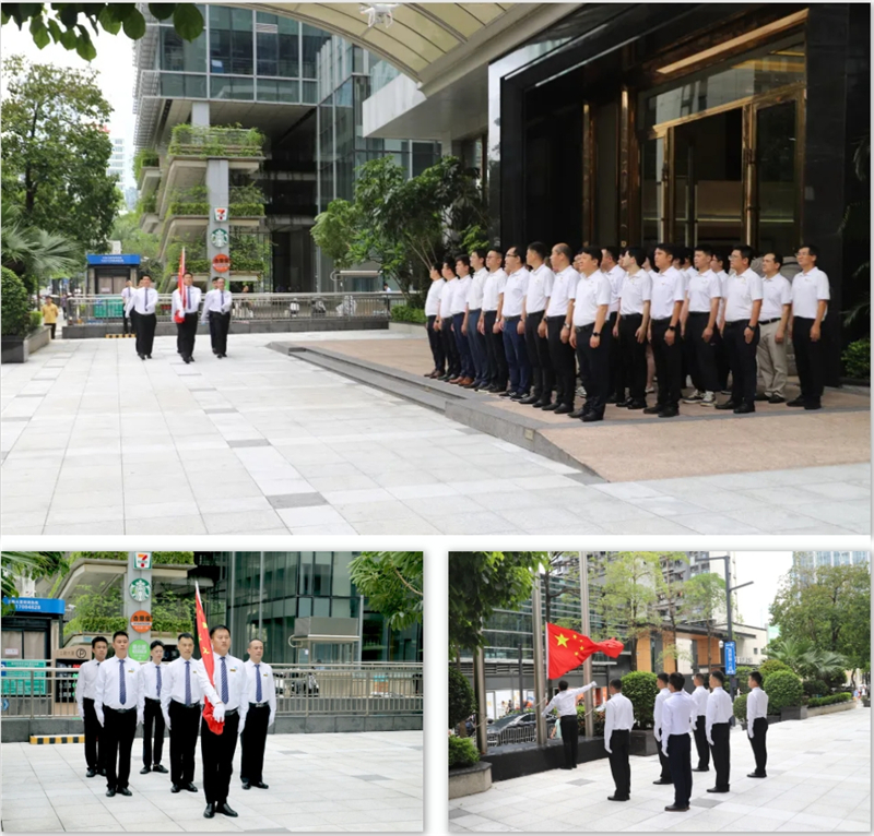 伴随着初升的朝阳,鲜艳的五星红旗在雄壮激昂的国歌声中冉冉升起,猎猎飘扬。集团领导及党员职工代表齐聚国旗下,整齐列队、庄严肃立,面向国旗行注目礼,以此表达对党和祖国的美好祝福。