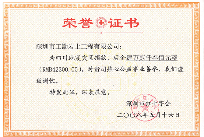 2008-四川地震灾区捐款荣誉证书