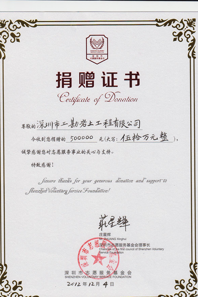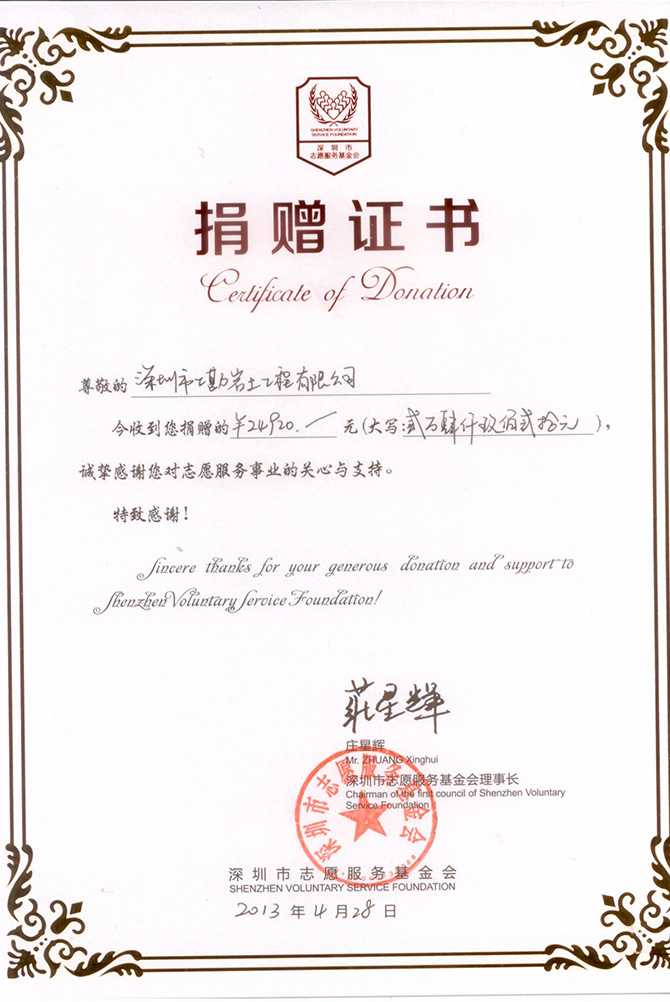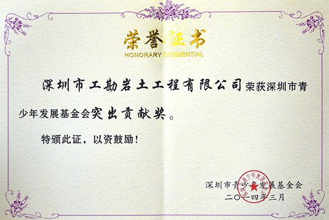 2014年公司荣获深圳市青少年发展基金会..