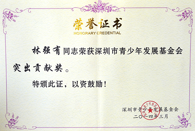 2014年林强有荣获深圳市青少年发展基金..