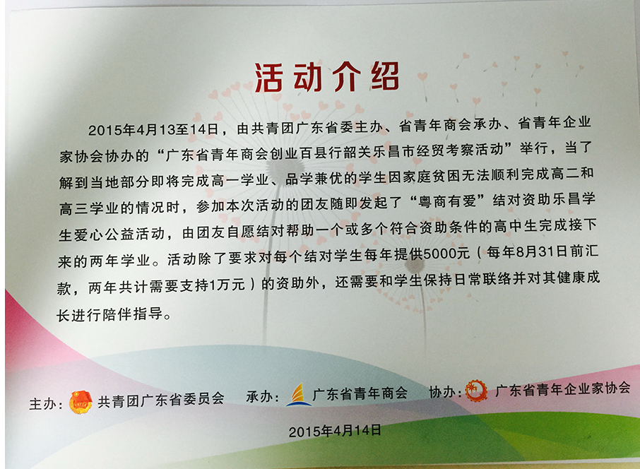 广东省青少年发展基金会 圆梦计划 捐赠证..